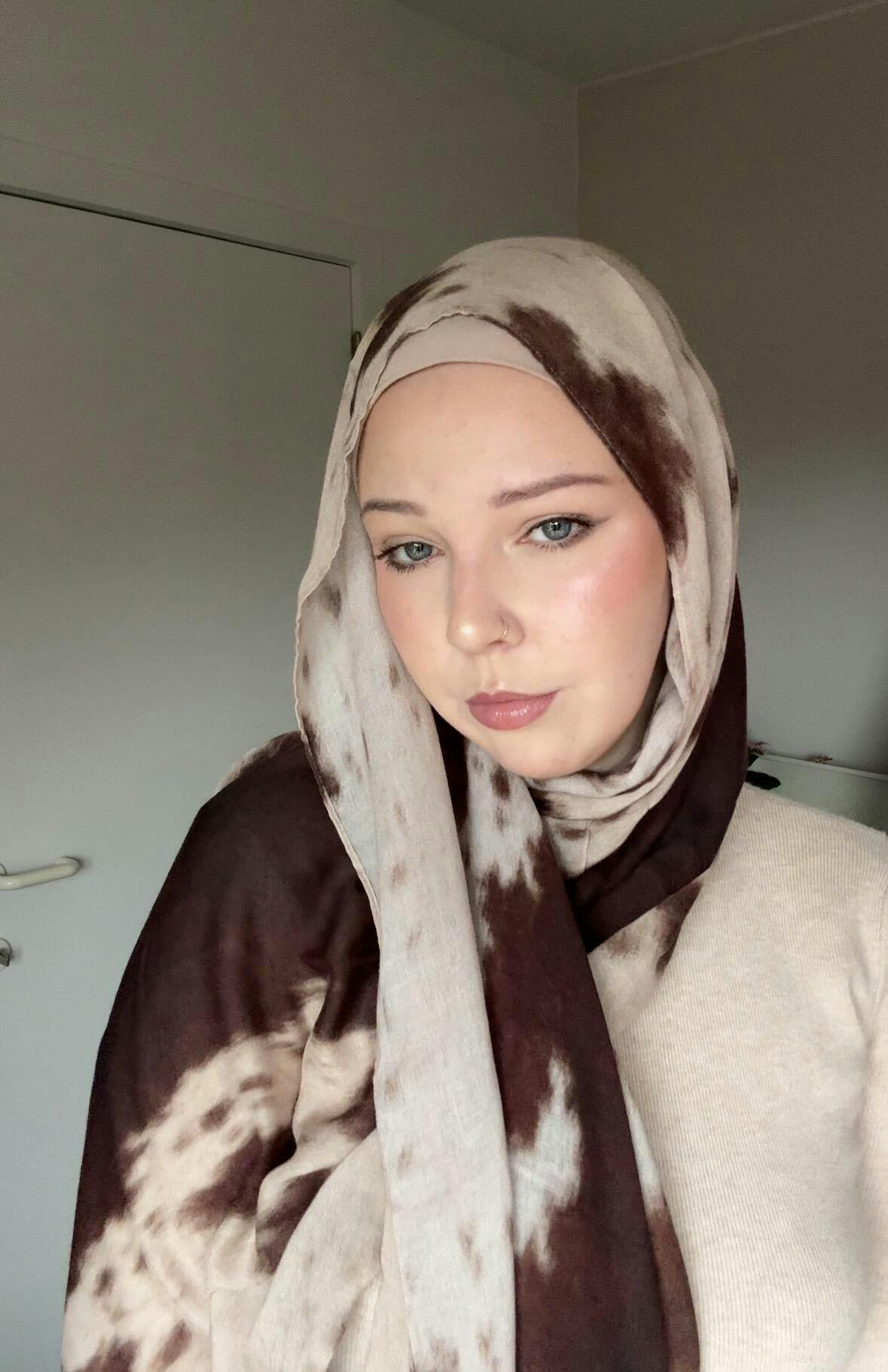 The beauty of this design? It's reversible. One side features deep, rich brown tones for a sophisticated, grounded aesthetic. Flip it over to reveal lighter cream tones for a softer, more contemporary look. Two distinct vibes in one hijab, giving you the versatility to match your mood, your outfit, or the occasion. Make it yours, your way.